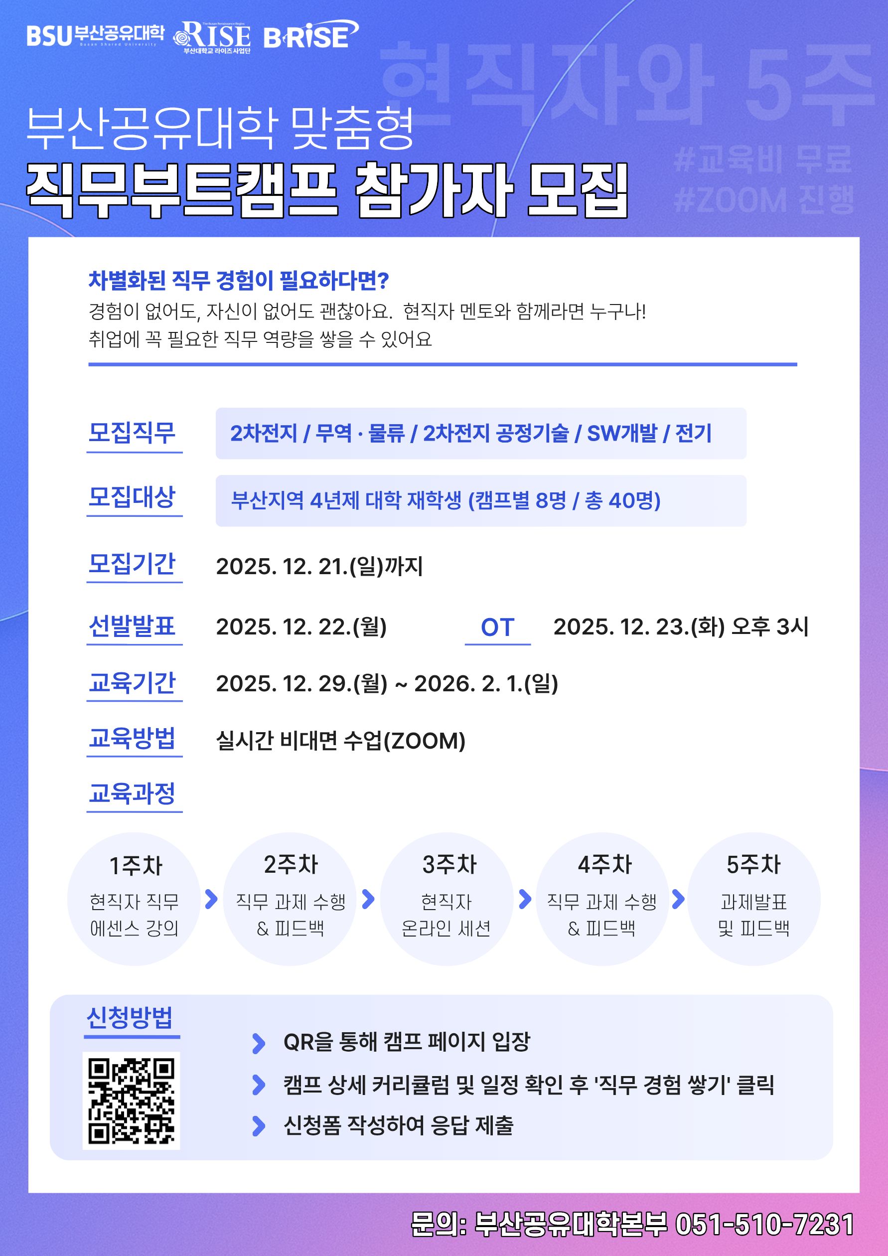 [RISE] 2025학년도 동계 부산공유대학 맞춤형 직무부트캠프 참가자 모집 안내